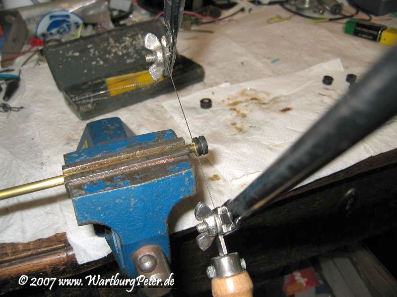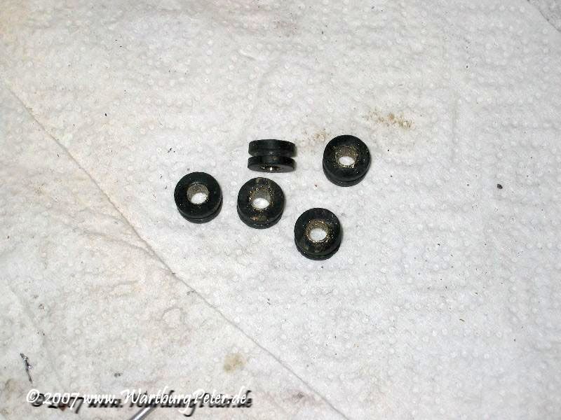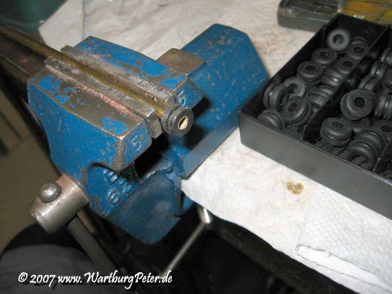 Dafür benötigt man nur 6 kleine Kabeldurchführungsgummis und 6 kurze Stücken Messingrohr. Messingrohr aufschieben, passend abschneiden, fertig.